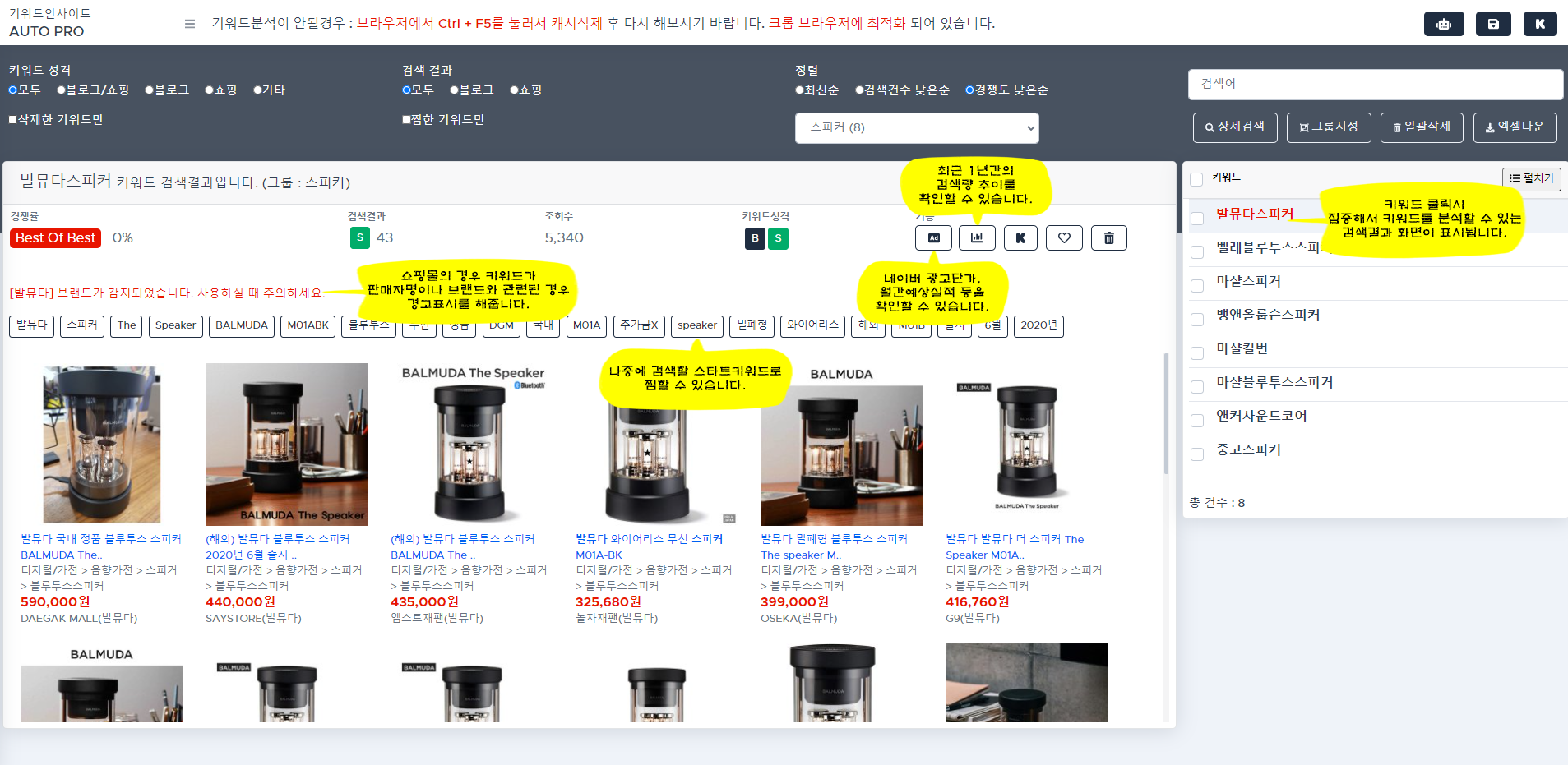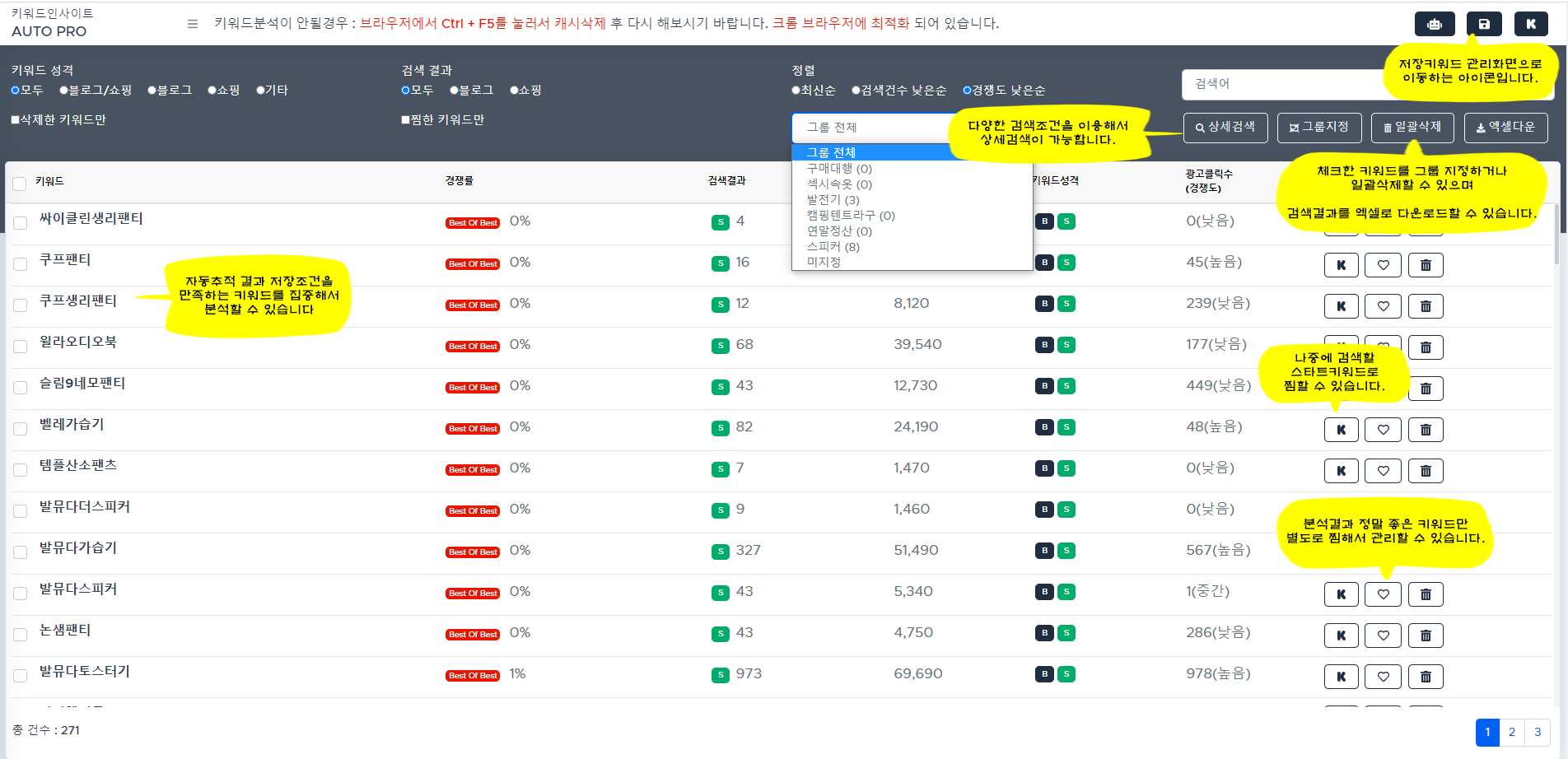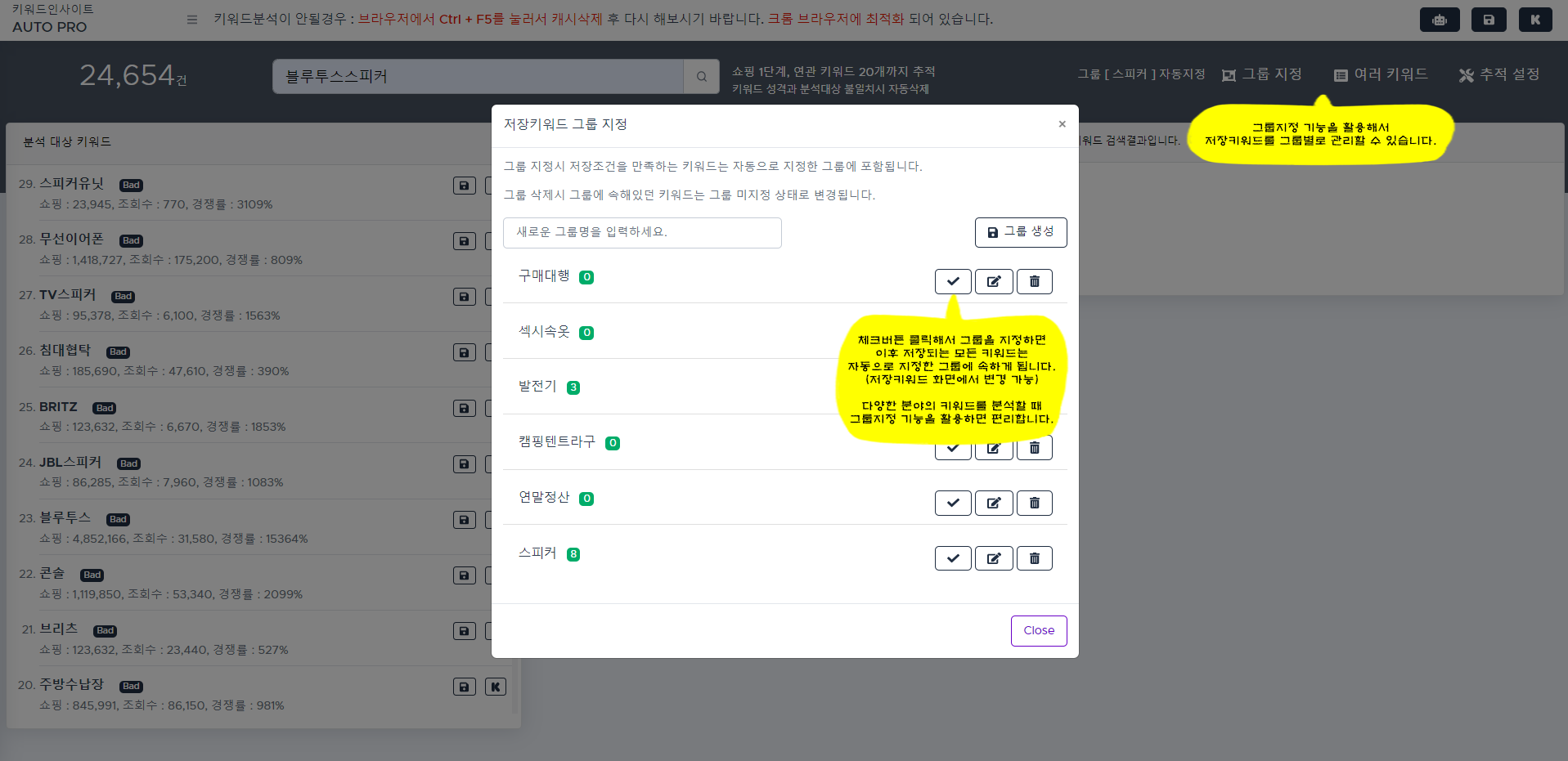 저장키워드를 그룹별로 편리하게 관리할 수 있습니다.